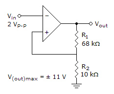 Refer to the given figure. A square-wave input is applied to this amplifier. The output voltage is most likely to be