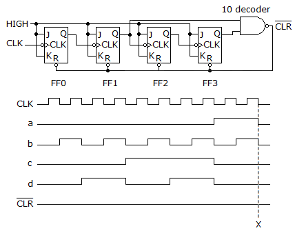 The counter circuit and associated waveforms shown below are for a(n) ________ counter, and the correct output waveform for QB is shown by waveform ________.