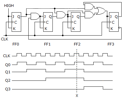 Assume you want to determine the timing diagram for a 4-bit counter using an oscilloscope. The best choice for an oscilloscope trigger signal is ________.