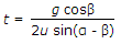 The time of flight (t) of a projectile on an upward inclined plane is(where u = Velocity of projection, α = Angle of projection, and β = Inclination of the plane with the horizontal.)