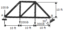 Determine the horizontal and vertical components of reaction at the pin A and the reaction at the roller support B required for equilibrium of the truss.