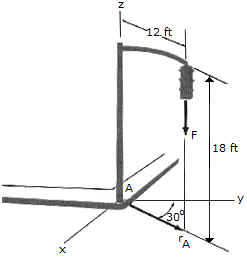 The pole supports a 22-lb traffic light. Using Cartesian vectors, determine the moment of the weight of the traffic light about the base of the pole at A.