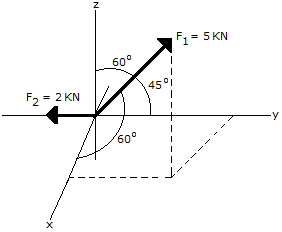 Determine the magnitude and direction angles of F2, so that the resultant of the two forces acts upward along the z axis of the pole and has a magnitude of 275 N.