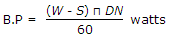 The brake power (B.P.) of the engine is given by (where W = Brake load or dead load in newtons, l = Length of arm in metres, N = Speed of engine in r.p.m., S - Spring balance reading in newtons, D = Dia. of brake drum in metres, and d = Dia. of rope in metres)
