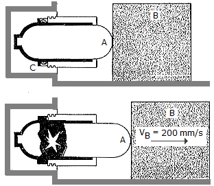 In cases of emergency, the gas actuator can be used to move a 75-kg block B by exploding a charge C near a pressurized cylinder of negligible mass. As a result of the explosion, the cylinder fractures and the released gas forces the front part ofthe cylinder, A, to move B and the floor is