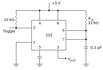What is the output pulse width of the waveform at the output of the circuit in the given figure?