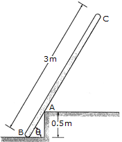 The uniform pole has a mass of 15 kg and falls from rest when = 90° until it strikes the edge at A, = 60°. If the pole then begins to pivot about this point after contact, determine the pole's angular velocity just after the impact. Assume that the pole does not slip at B as it falls until it strikes A.