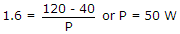 A thyristor has a maximum allowable junction temperature of 120°C and the ambient temperature is 40°C. If thermal resistance is 1.6° C/W, the maximum allowable internal power dissipation is